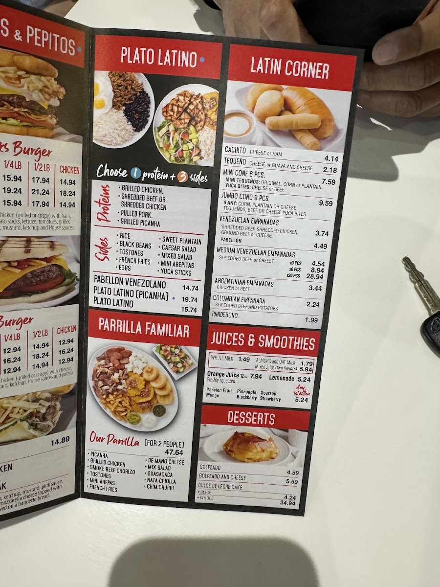 RICE, BLACK BEANS, TOASTONES, FRENCH FRIES, EGGS, SWEET PLANTAIN, CAESAR SALAD, MIXED SALAD, MINI AREPITAS, YUCA STICKS.